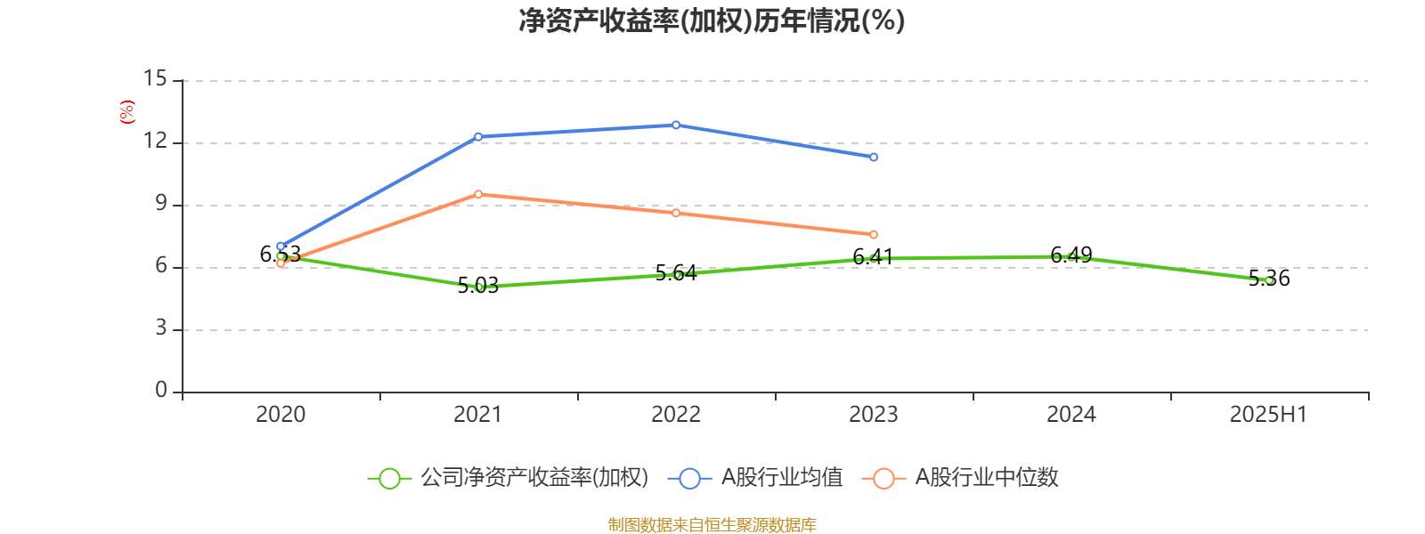 2025年上半年,公司平均净资产收益率为5.36%,较上年同期下降0.21个百分点。