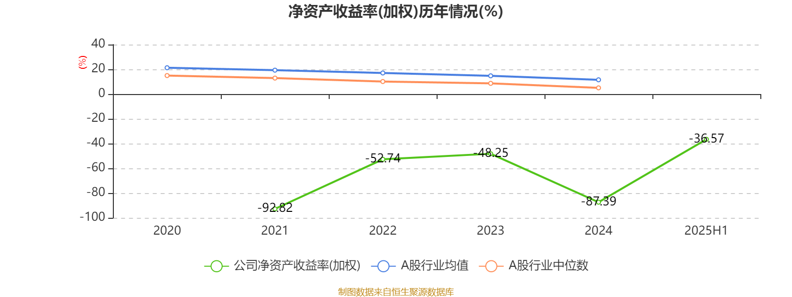 2025年上半年,公司平均净资产收益率为-36.57%,较上年同期上升0.64个百分点。