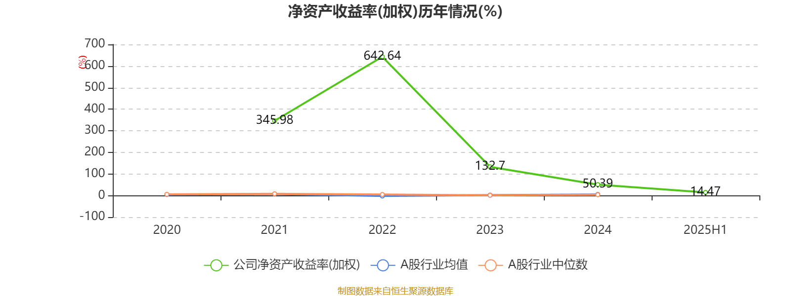 2025年上半年,公司平均净资产收益率为14.47%,较上年同期下降6.98个百分点。