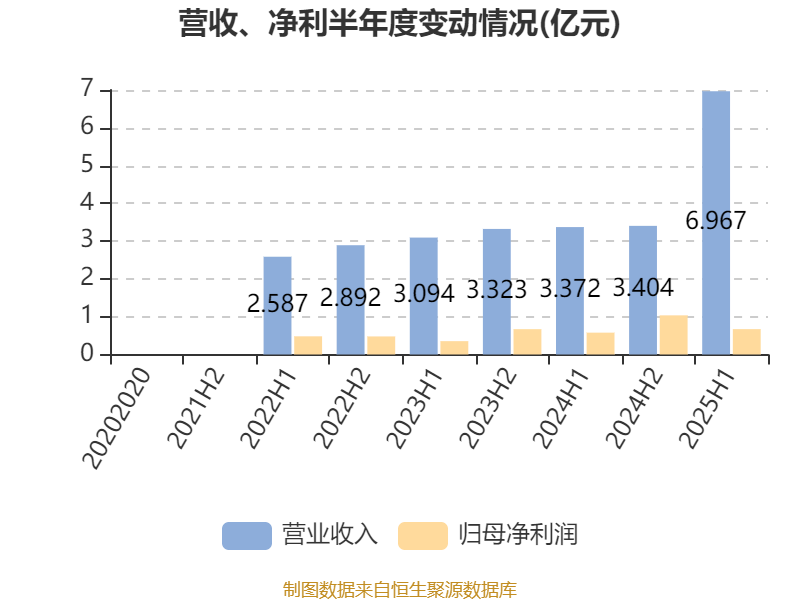 中证智能财讯长久股份(06959)9月30日披露2025年中期报告。报告期内,公司实现营业收入6.97亿元,同比增长106.61%;归母净利润6708.5万元,同比增长16.06%;据报告显示,长久股份基本每股收益为0.3318元,平均净资产收益率为14.47%。