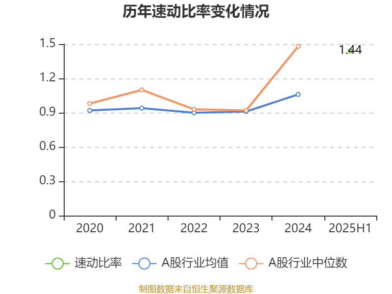 2025年上半年,公司流动比率为2.04,速动比率为1.44。