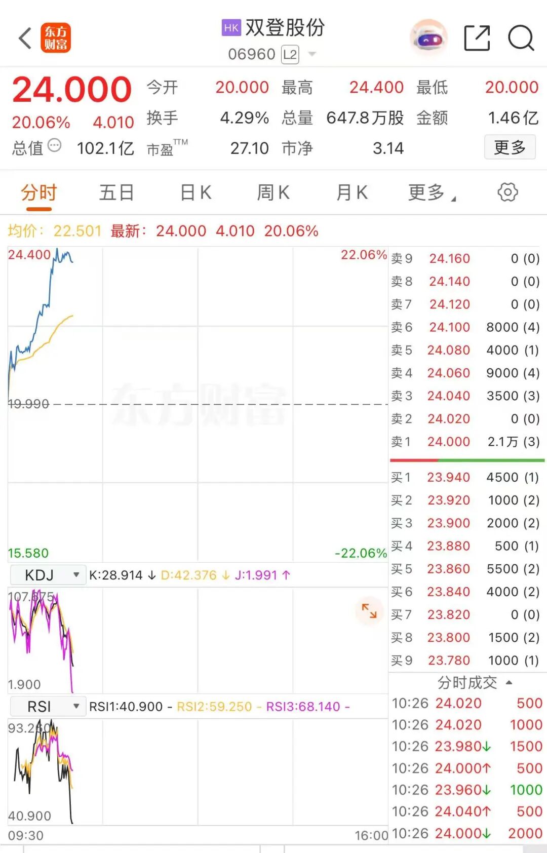 10月3日,港股双登股份开盘后即呈现股价快速拉升态势,盘中一度涨超22%。截至10时26分,双登股份涨20.06%,报24港元/股,成交额突破1亿港元。10月2日,双登股份收涨8.52%。不到两个交易日,双登股份涨超30%。其他储能概念股保持活跃,中国安储能源盘中涨逾5%。