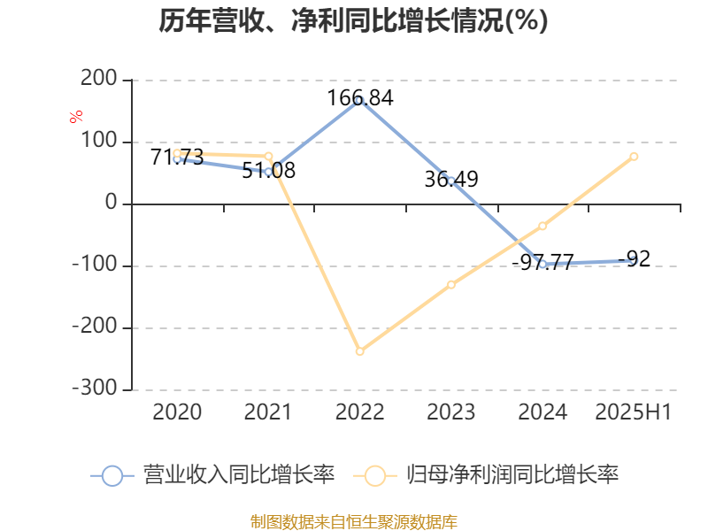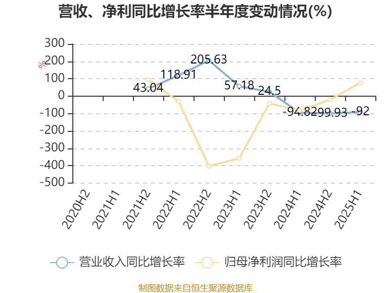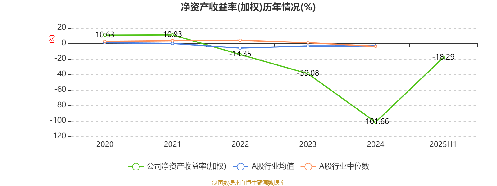 2025年上半年,公司平均净资产收益率为-18.29%,较上年同期上升6.65个百分点。