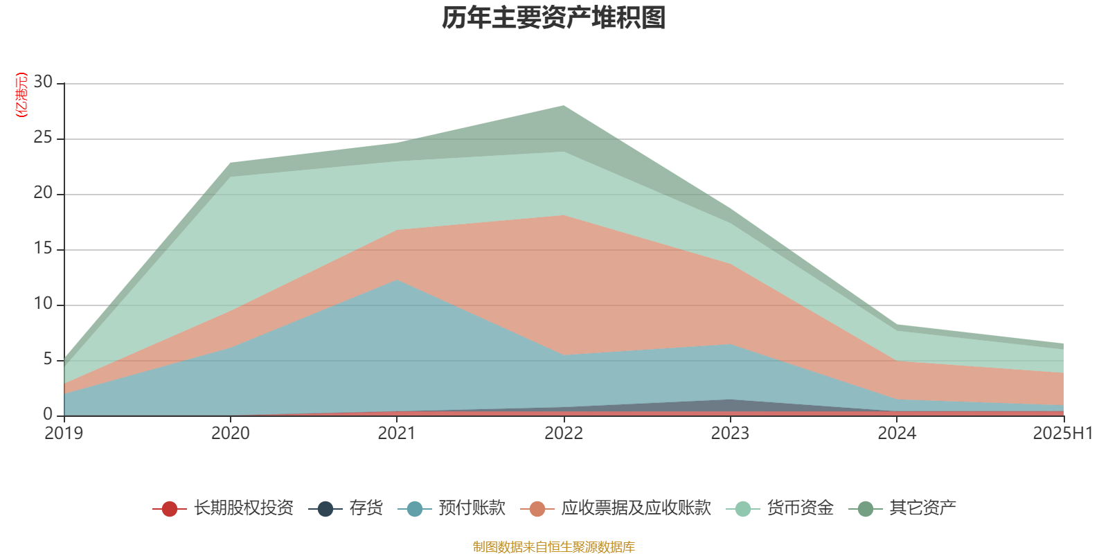 资产重大变化方面,截至2025年上半年,公司预付账款较上期末减少49.93%,占公司总资产比重下降4.81个百分点;应收票据及应收账款较上期末减少15.82%,占公司总资产比重上升2.86个百分点;固定资产较上期末增加23.67%,占公司总资产比重上升1.8个百分点;长期股权投资较上期末增加3.06%,占公司总资产比重上升1.39个百分点。
