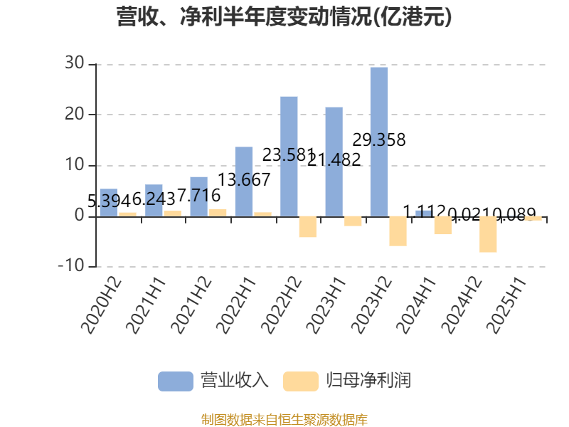 2025年上半年,公司经营活动现金流净额为-756.3万港元;筹资活动现金流净额-1401.3万港元;投资活动现金流净额630.9万港元。