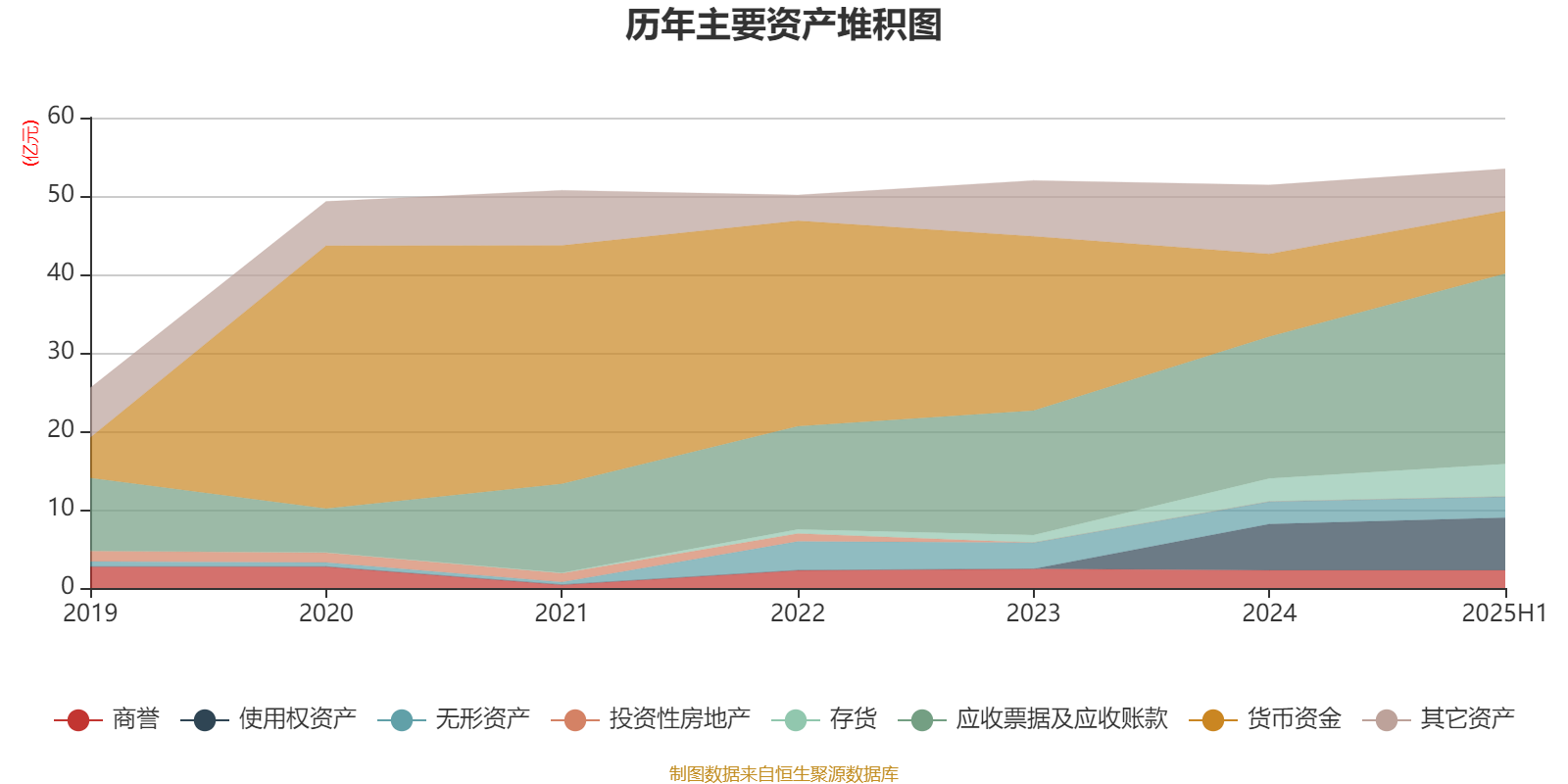 资产重大变化方面,截至2025年上半年,公司应收票据及应收账款较上期末增加34.26%,占公司总资产比重上升10.24个百分点;货币资金较上期末减少24.3%,占公司总资产比重下降5.58个百分点;长期股权投资较上期末增加236.59%,占公司总资产比重上升2.79个百分点;交易性金融资产较上期末增加484.26%,占公司总资产比重上升2.71个百分点。