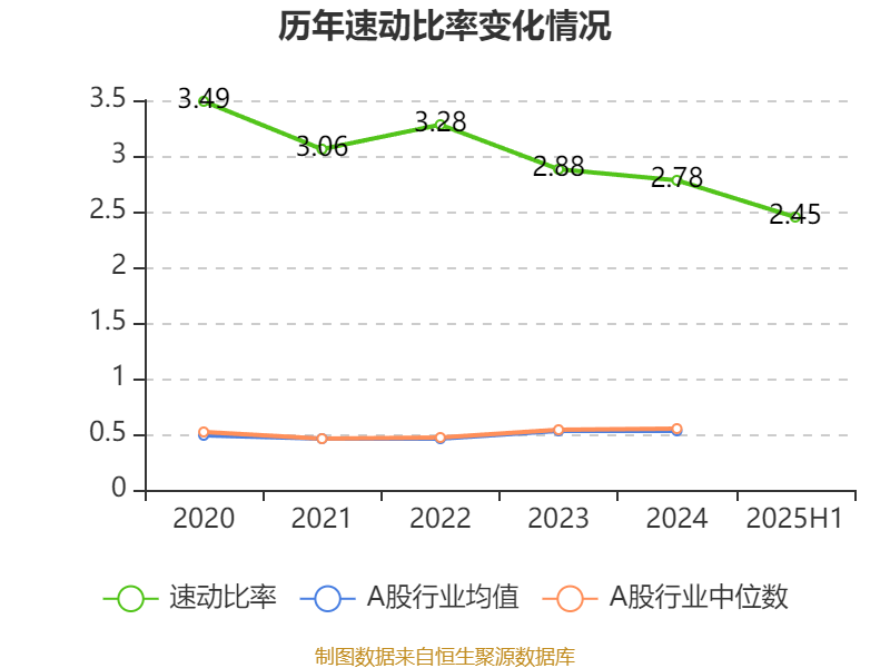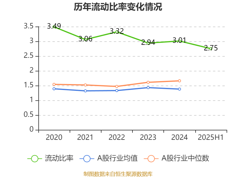 2025年上半年,公司流动比率为2.75,速动比率为2.45。