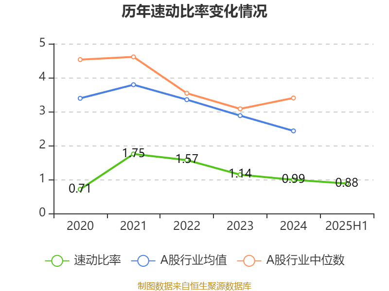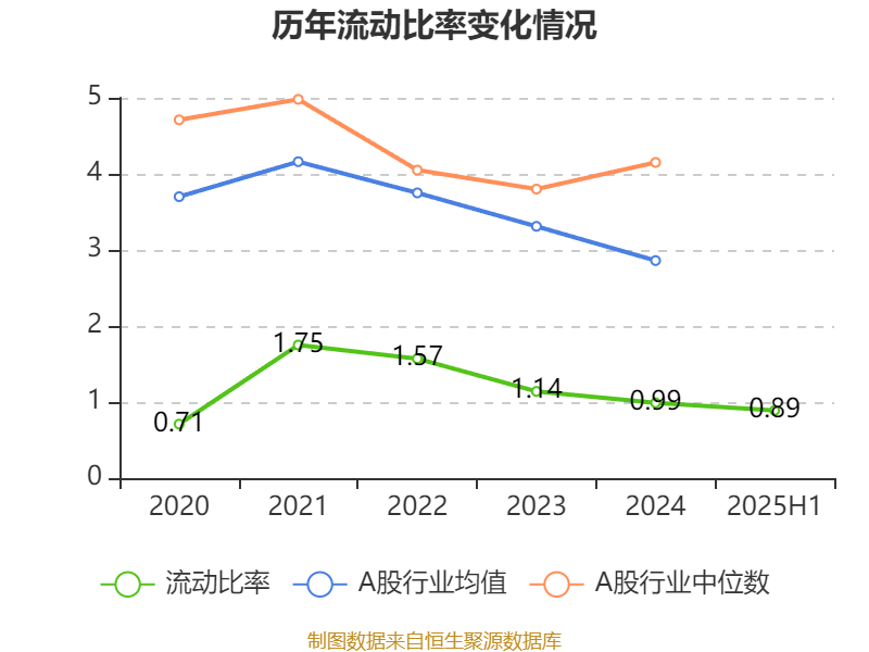 2025年上半年,公司流动比率为0.89,速动比率为0.88。