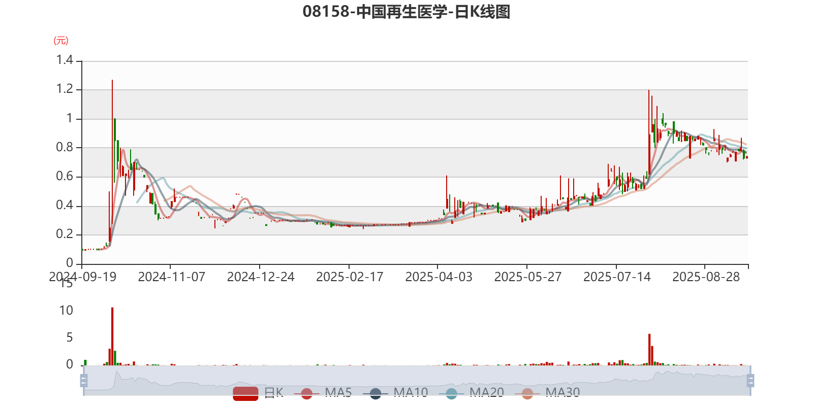 中国再生医学:2025年中期净利润460.9万港元 同比下降78.15%