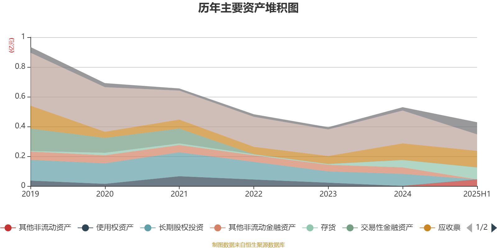 资产重大变化方面,截至2025年上半年,公司货币资金较上期末减少49.61%,占公司总资产比重下降15.83个百分点;长期股权投资较上期末减少100%,占公司总资产比重下降15.23个百分点;交易性金融资产占公司总资产的10.21%,上期末为0;存货较上期末增加61.48%,占公司总资产比重上升9.43个百分点。