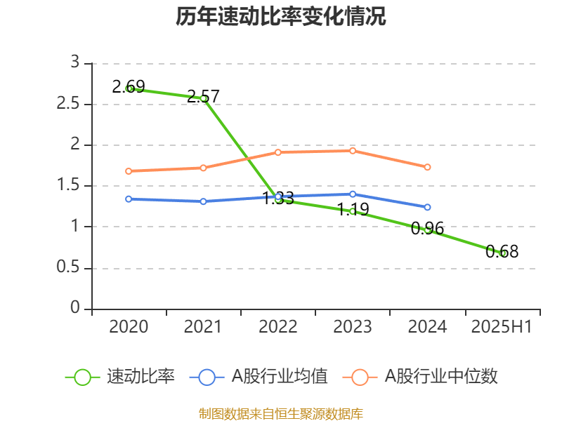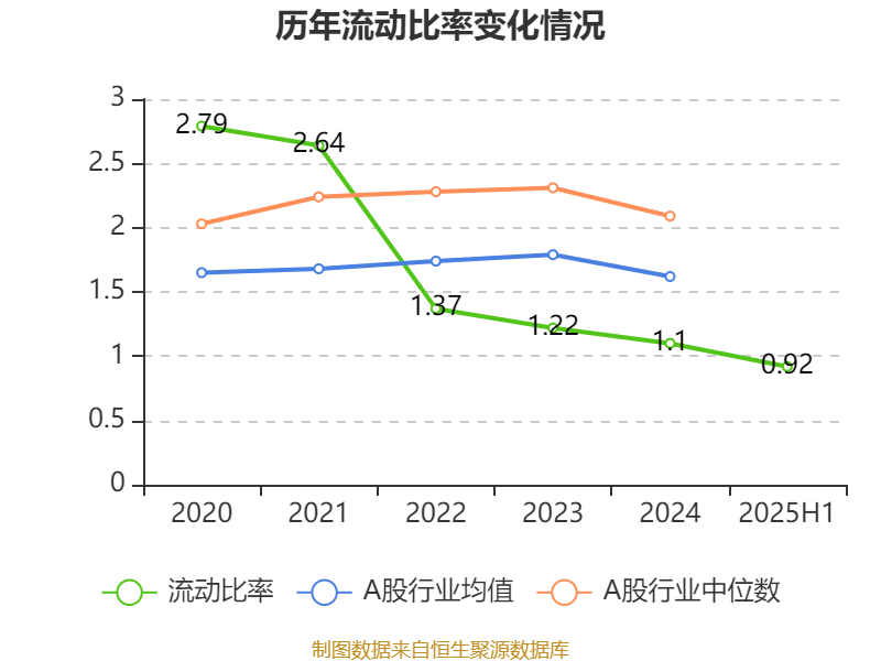2025年上半年,公司流动比率为0.92,速动比率为0.68。