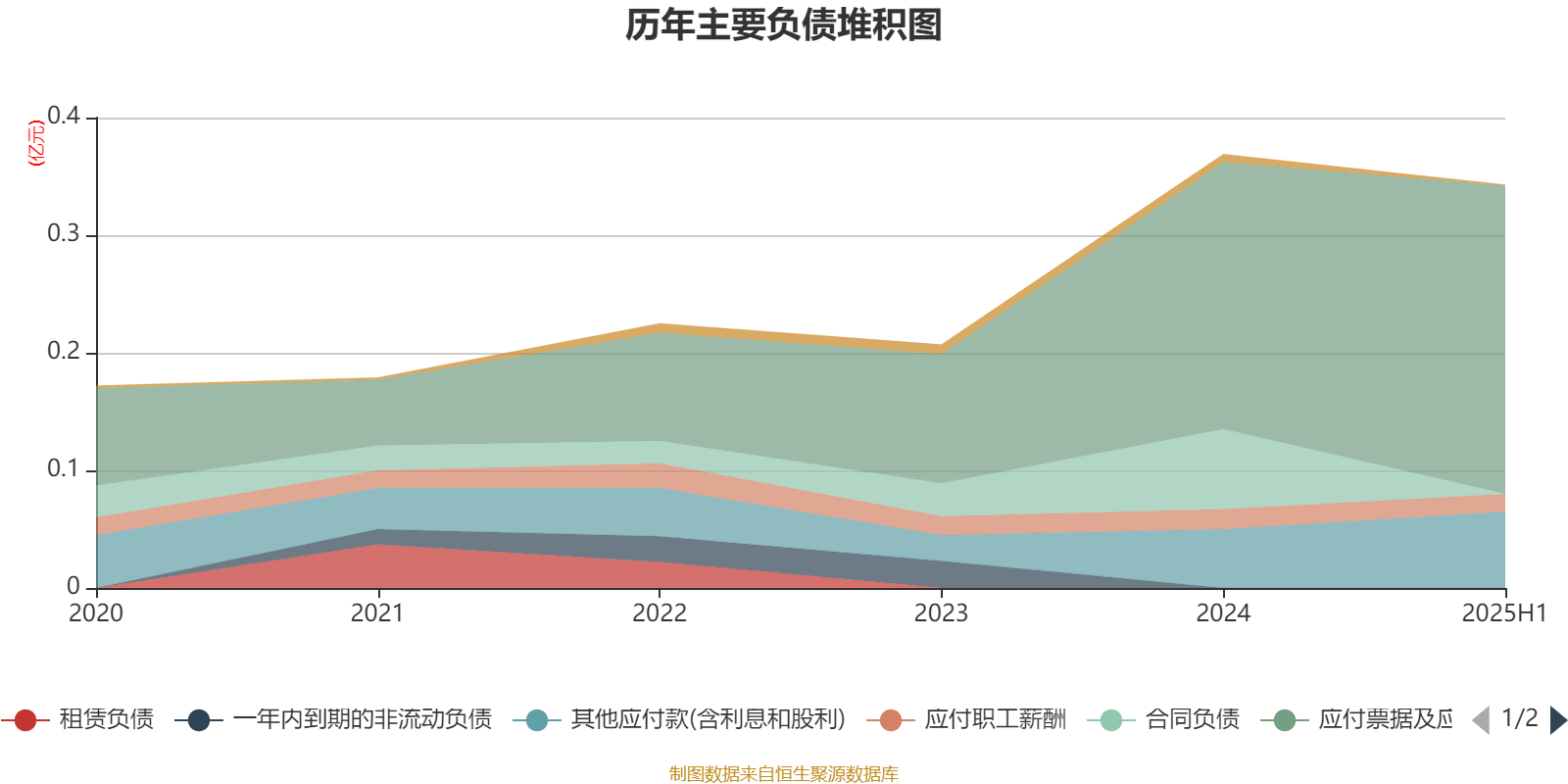 负债重大变化方面,截至2025年上半年,公司应付票据及应付账款较上期末增加15.48%,占公司总资产比重上升18.24个百分点;合同负债较上期末减少100%,占公司总资产比重下降12.8个百分点;其他应付款(含利息和股利)较上期末增加29.29%,占公司总资产比重上升5.64个百分点;应交税费较上期末减少180.4%,占公司总资产比重下降2.61个百分点。