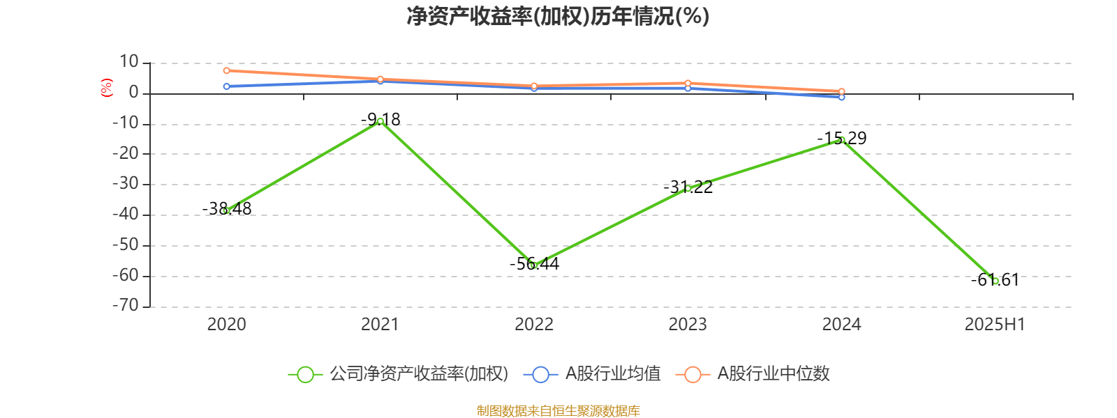 2025年上半年,公司平均净资产收益率为-61.61%,较上年同期下降40.13个百分点。