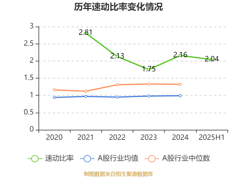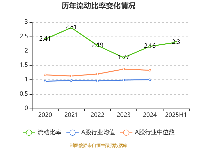 2025年上半年,公司流动比率为2.30,速动比率为2.04。