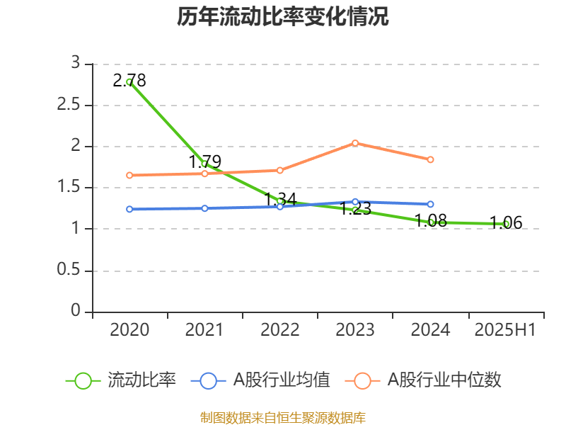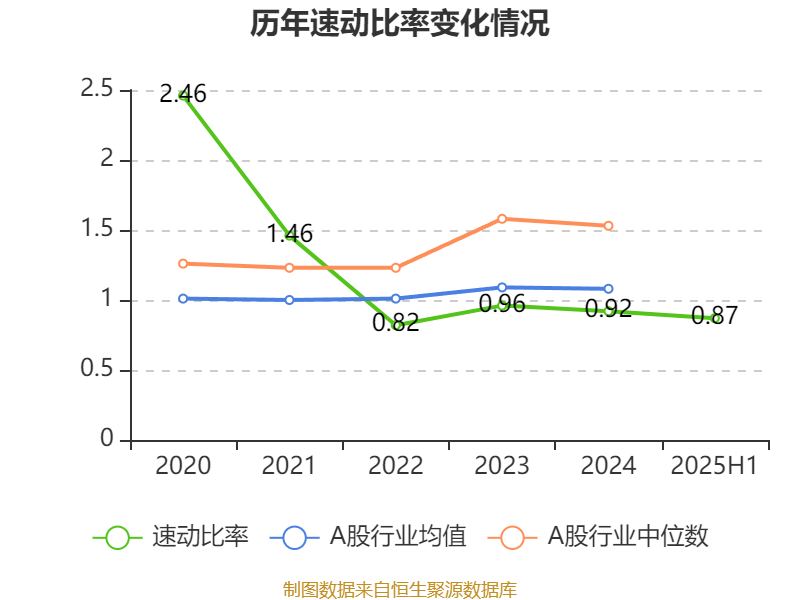 2025年上半年,公司流动比率为1.06,速动比率为0.87。