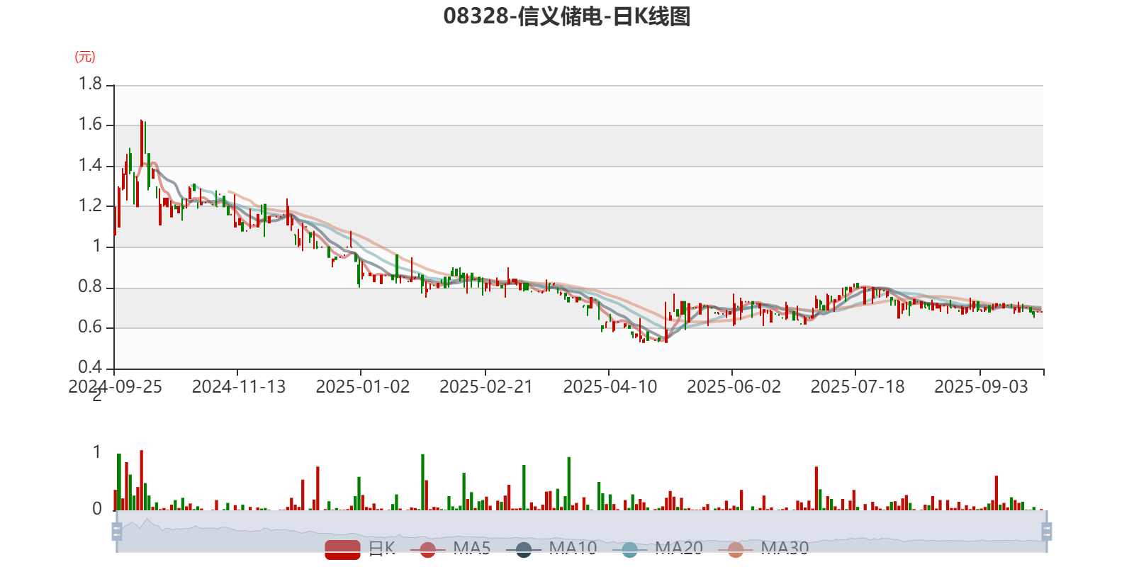 以9月25日收盘价计算,信义储电目前市净率(TTM)约0.54倍,市销率(TTM)约0.5倍。