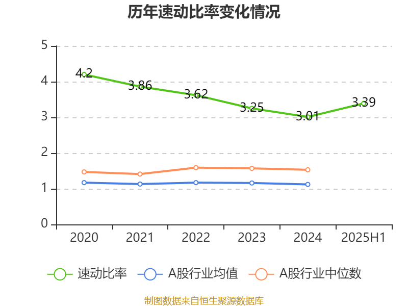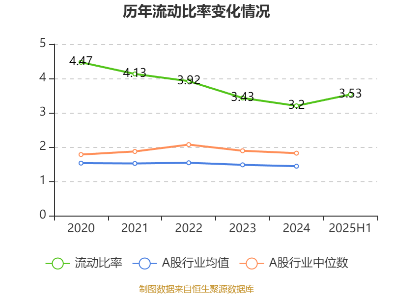 2025年上半年,公司流动比率为3.53,速动比率为3.39。