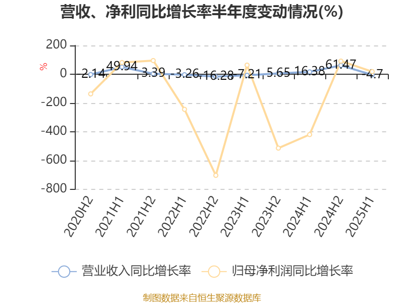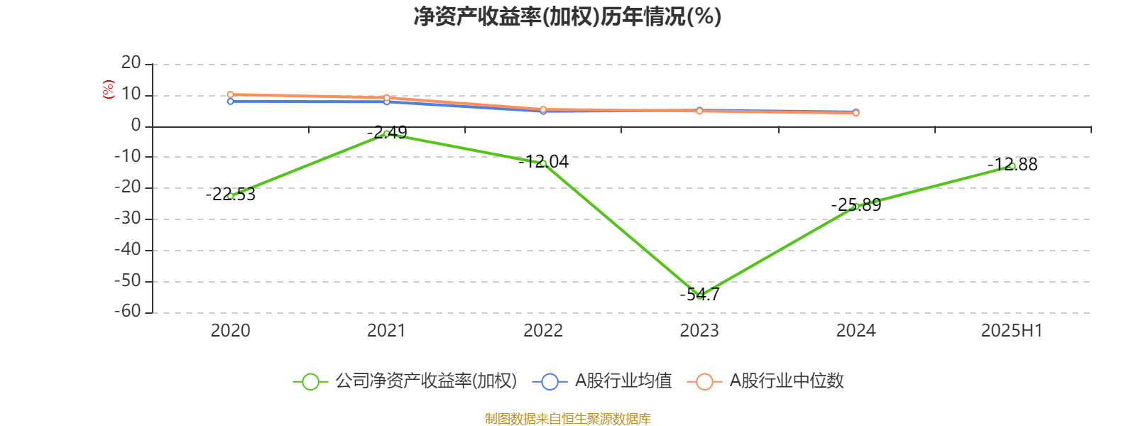 2025年上半年,公司平均净资产收益率为-12.88%,较上年同期上升7.68个百分点。