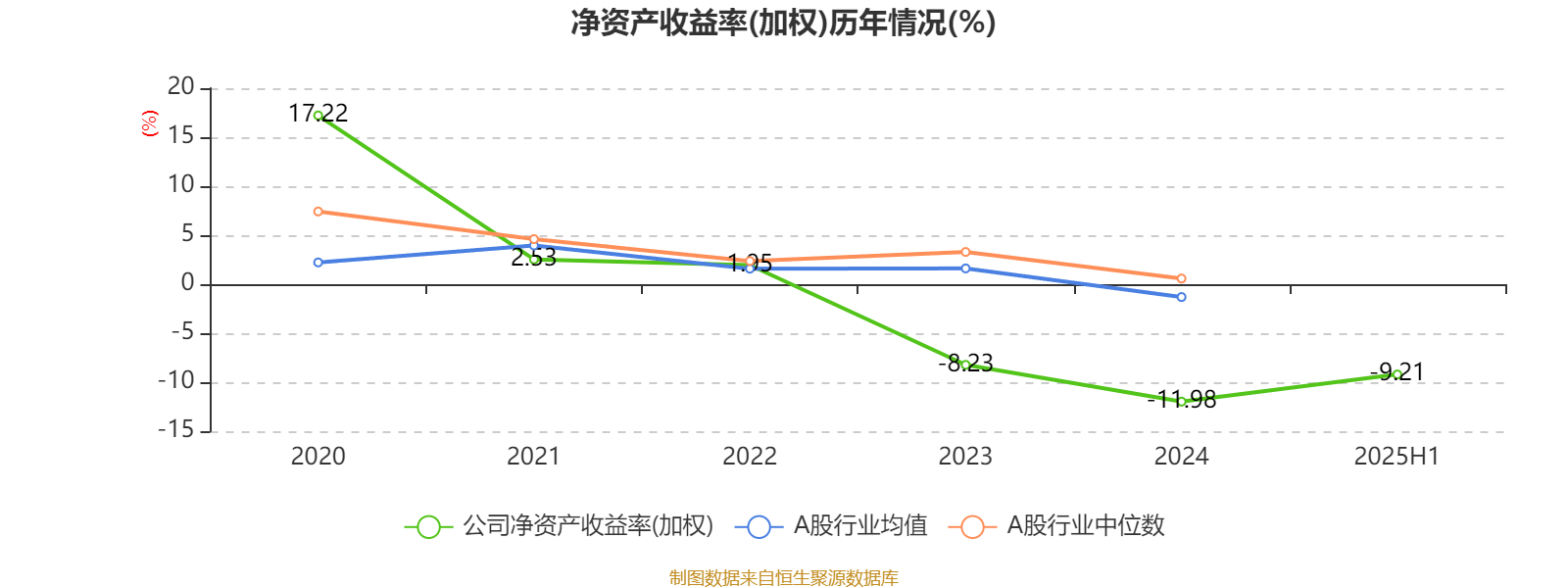 2025年上半年,公司平均净资产收益率为-9.21%,较上年同期下降2.14个百分点。