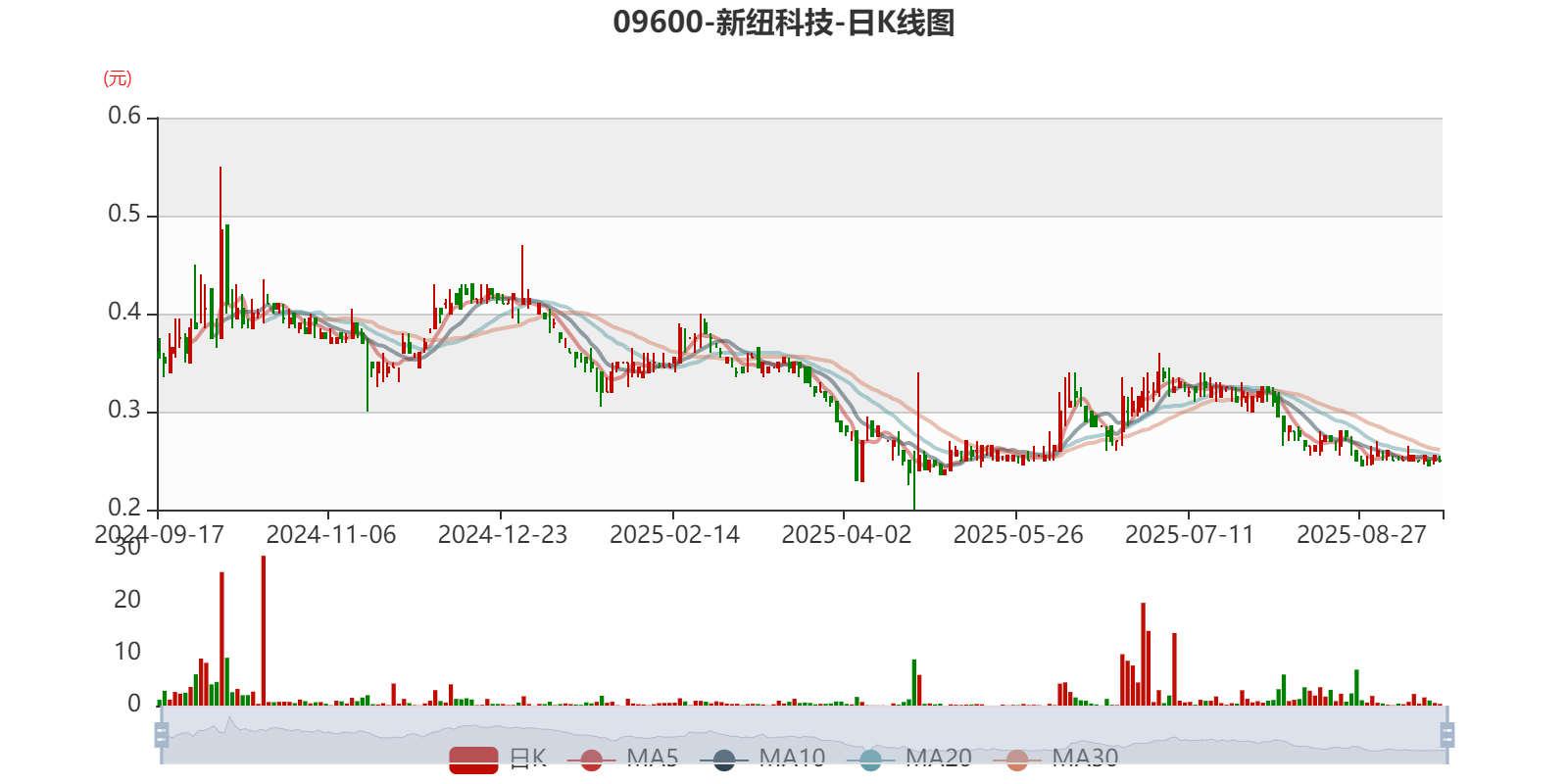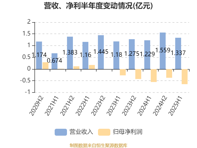 中证智能财讯新纽科技(09600)9月17日披露2025年中期报告。报告期内,公司实现营业收入1.34亿元,同比增长8.82%;归母净利润亏损6437.8万元,上年同期亏损5522.6万元;经营活动产生的现金流量净额为-3896.8万元,上年同期为-3429.1万元;据报告显示,新纽科技基本每股收益为-0.0686元,平均净资产收益率为-9.21%。