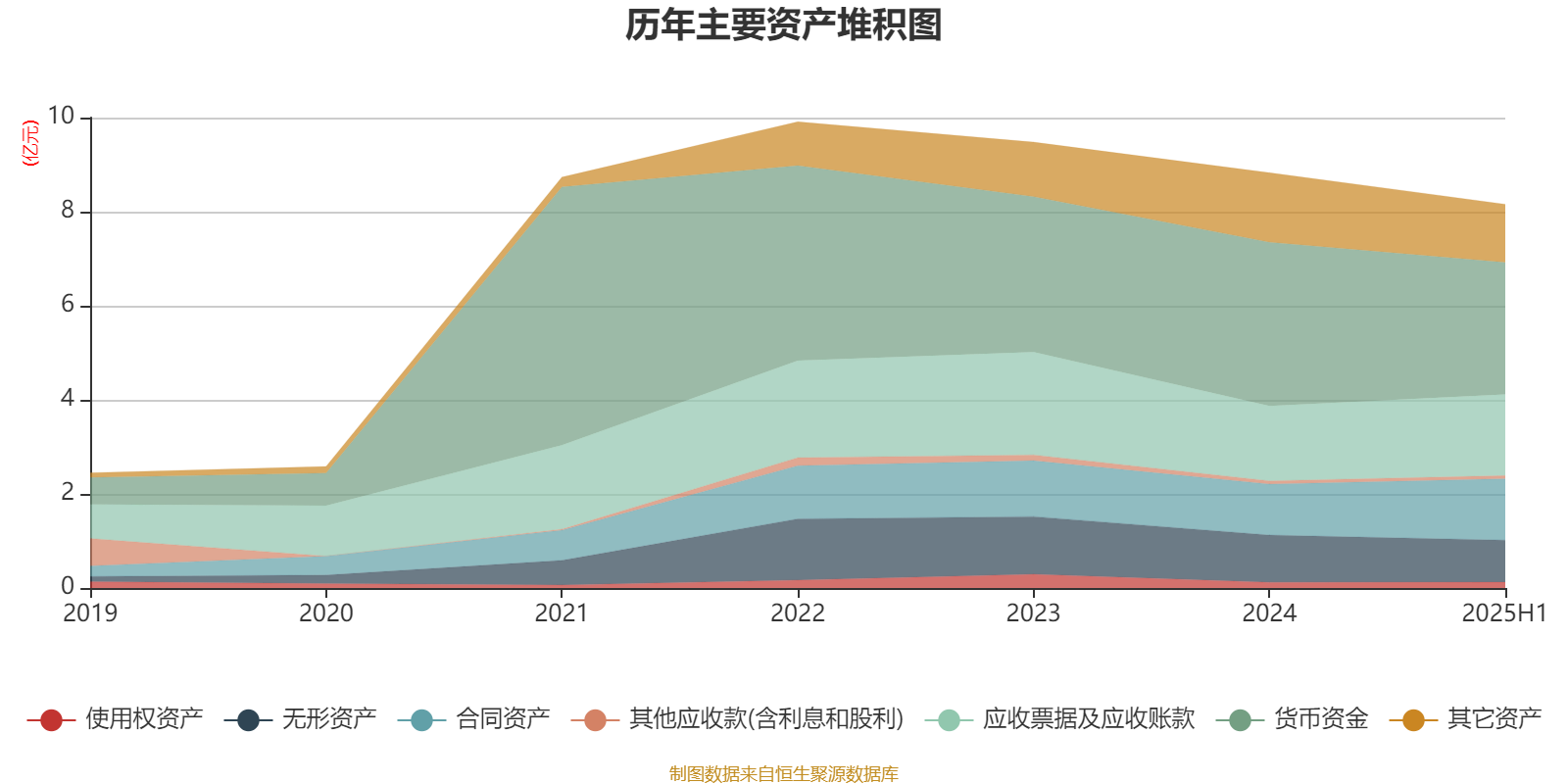 资产重大变化方面,截至2025年上半年,公司货币资金较上期末减少19.33%,占公司总资产比重下降5.01个百分点;合同资产较上期末增加20.3%,占公司总资产比重上升3.71个百分点;应收票据及应收账款较上期末增加8.33%,占公司总资产比重上升3.1个百分点;交易性金融资产较上期末减少45.41%,占公司总资产比重下降1.31个百分点。