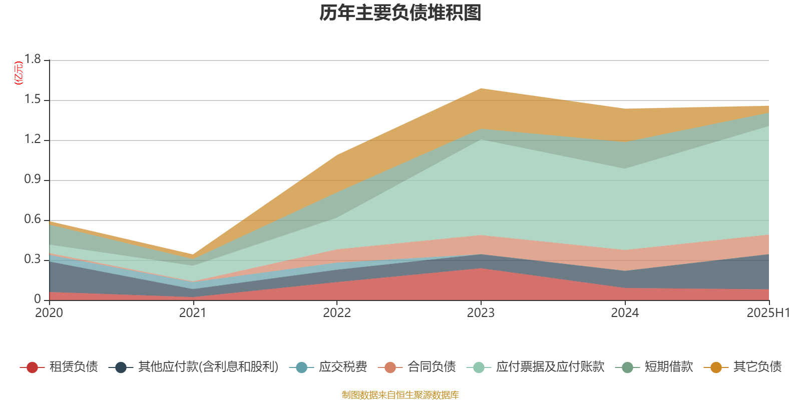 负债重大变化方面,截至2025年上半年,公司应付票据及应付账款较上期末增加33.77%,占公司总资产比重上升3.08个百分点;其他应付款(含利息和股利)较上期末增加104.42%,占公司总资产比重上升1.76个百分点;短期借款较上期末减少50%,占公司总资产比重下降1.04个百分点;租赁负债较上期末减少11.48%,占公司总资产比重下降0.04个百分点。