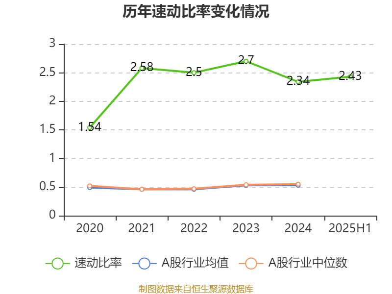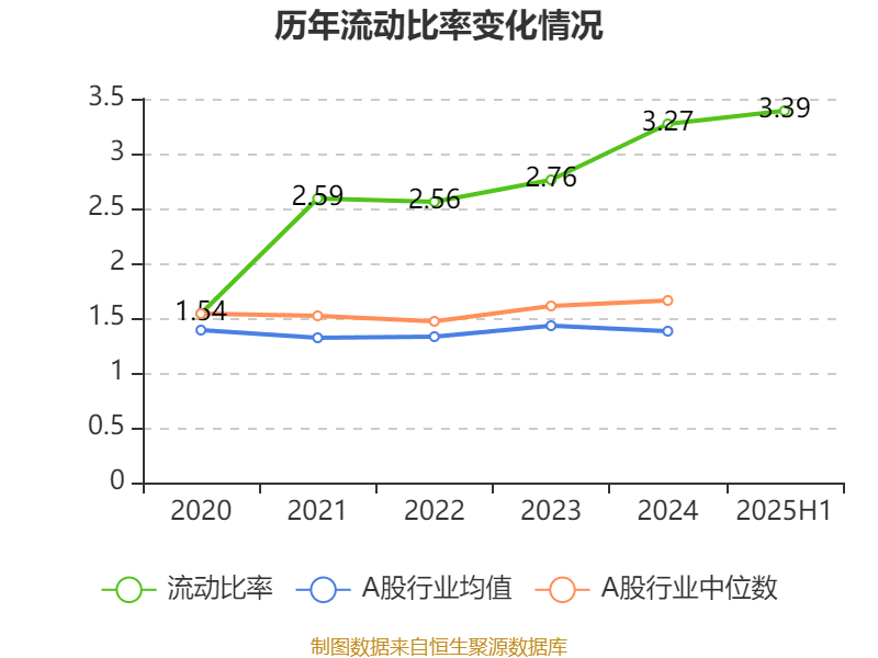 2025年上半年,公司流动比率为3.39,速动比率为2.43。