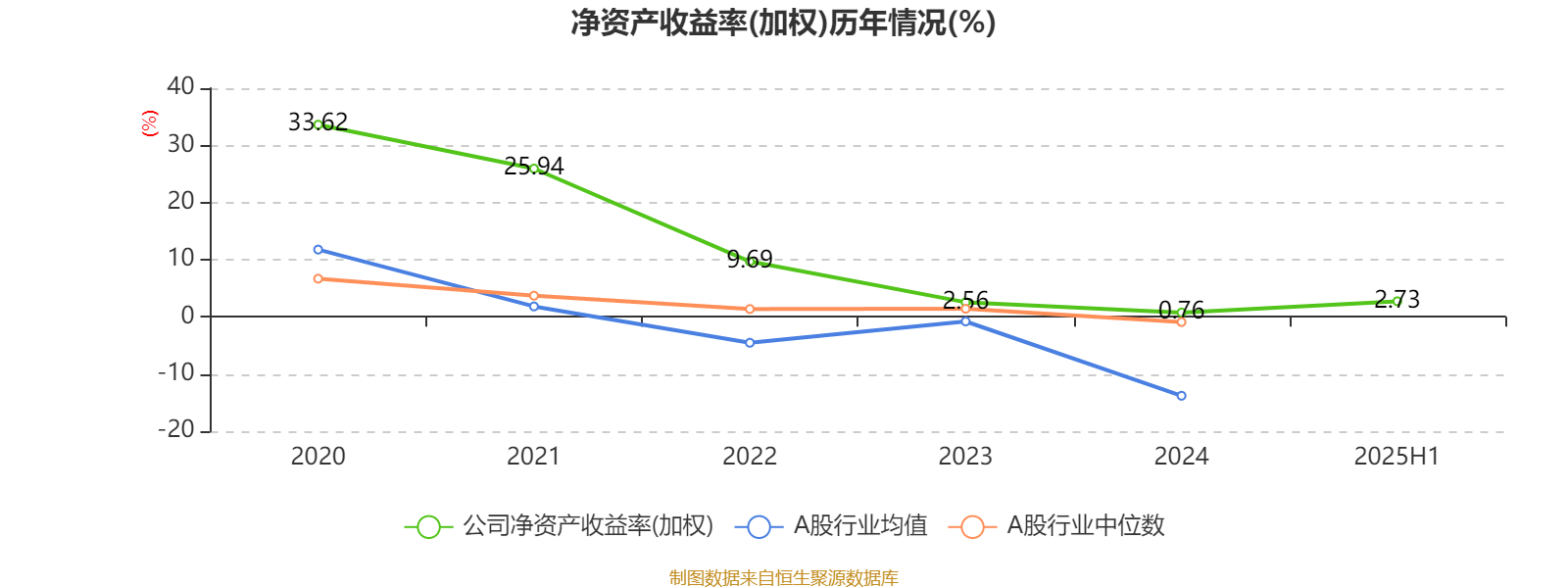 2025年上半年,公司平均净资产收益率为2.73%,较上年同期上升1.36个百分点。