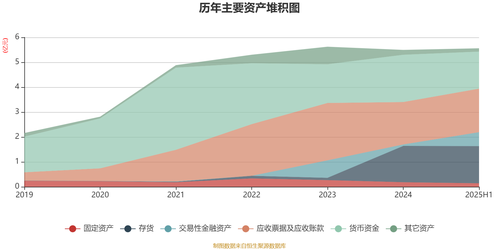 资产重大变化方面,截至2025年上半年,公司交易性金融资产较上期末增加832.89%,占公司总资产比重上升8.99个百分点;货币资金较上期末减少21.65%,占公司总资产比重下降7.79个百分点;长期股权投资较上期末减少100%,占公司总资产比重下降1.24个百分点;固定资产较上期末减少24.44%,占公司总资产比重下降0.84个百分点。