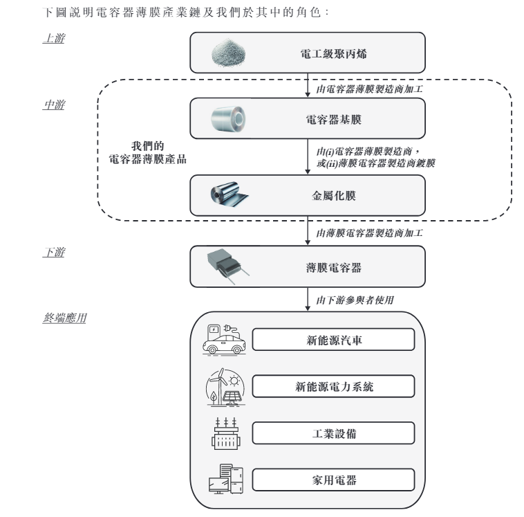 招股书显示,以2024年的电容器基膜销量计,海伟股份是中国第二大的电容器薄膜制造商。海伟股份的电容器薄膜产品主要包括电容器基膜及金属化膜。该等产品为薄膜电容器的关键组成部分,而薄膜电容器以其出色的耐电压性、高频稳定性及长使用寿命而著称。薄膜电容器的终端应用场景广泛,包括新能源汽车,新能源电力系统,工业设备及家用电器。在客户方面,海伟股份的客户主要包括薄膜电容器制造商以及比亚迪。
