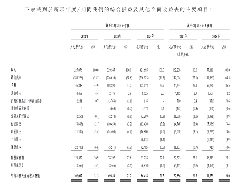 2022年及2023年,海伟股份的收入分别为人民币3.27亿元及人民币3.30亿元。海伟股份的收入由2023年的人民币3.30亿元增长28.0%至2024年的人民币4.22亿元。海伟股份的收入由截至2024年5月31日止五个月的人民币1.62亿元减少3.2%至截至2025年5月31日止五个月的人民币1.57亿元。