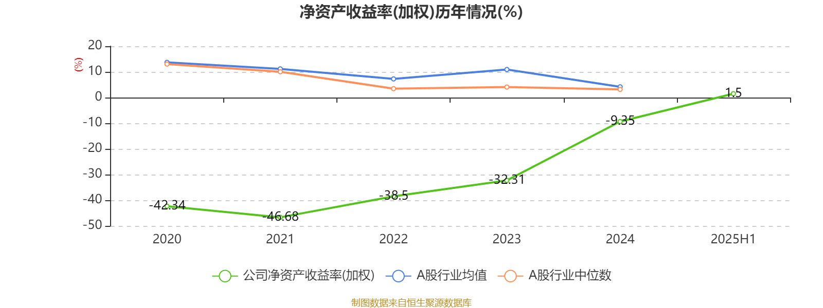 2025年上半年,公司平均净资产收益率为1.5%,较上年同期上升11.17个百分点。