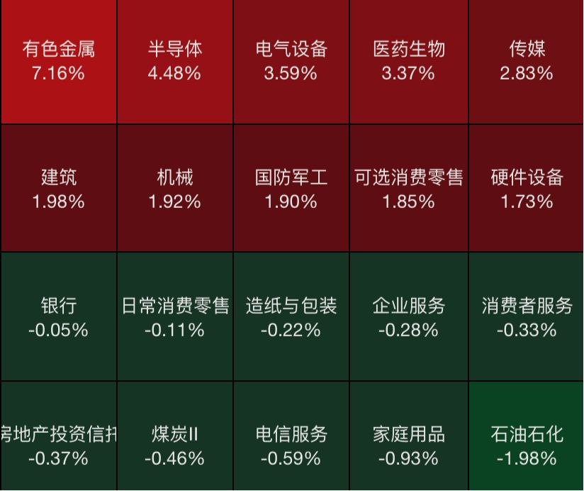 焦点板块方面,今日有色金属、半导体、电气设备等板块涨幅领先。有色金属方面,今日上市的紫金黄金国际(02259.HK)涨超68%、中国金属利用(01636.HK)涨超22%、中国大冶有色金属(01636.HK)涨超11%、中核国际(02302.HK)涨超12%。此外,江西铜业股份(00358.HK)、赣锋锂业(01772.HK)、五矿资源(01208.HK)涨超8%,洛阳钼业(03993.HK)涨超7%。