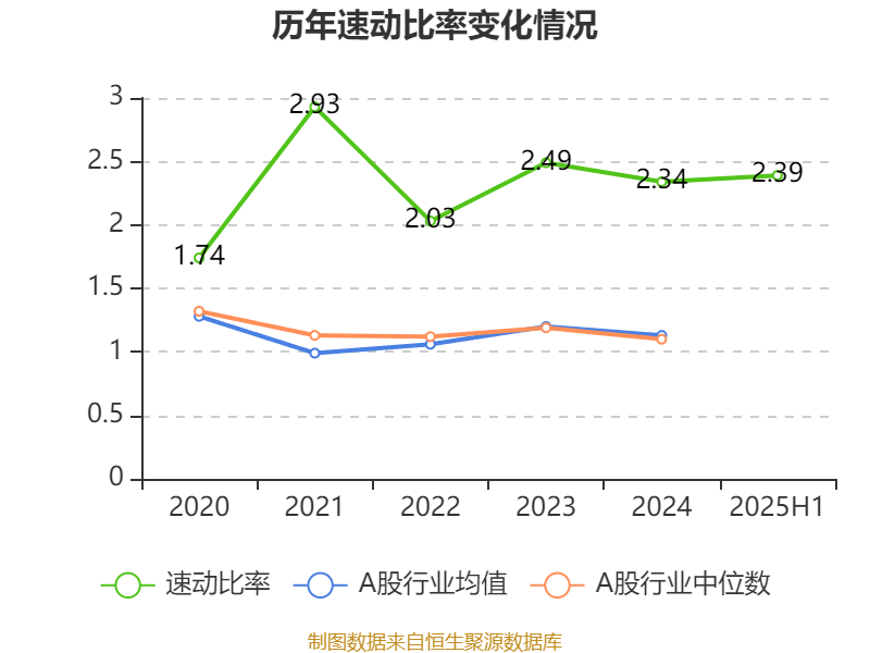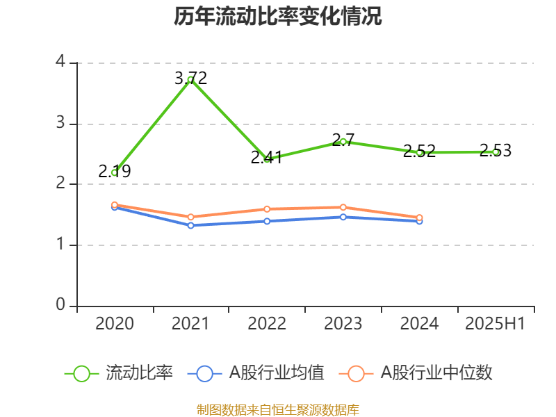 2025年上半年,公司流动比率为2.53,速动比率为2.39。