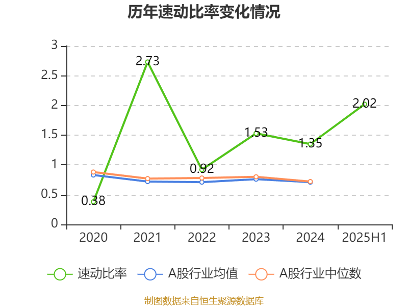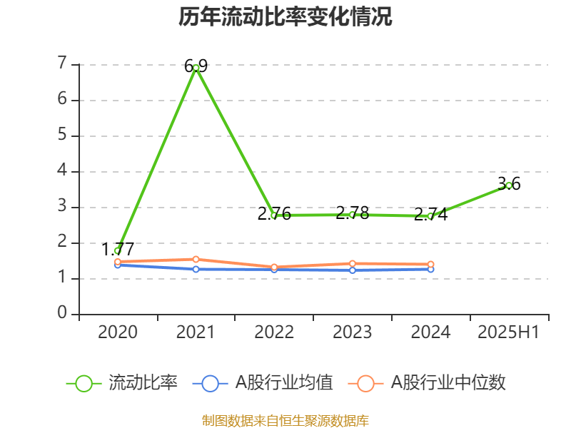 2025年上半年,公司流动比率为3.60,速动比率为2.02。