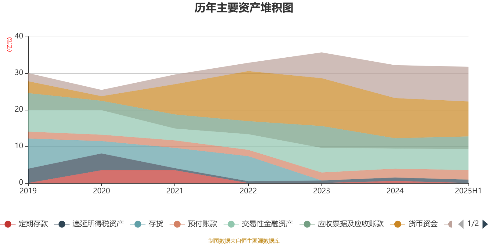 资产重大变化方面,截至2025年上半年,公司货币资金较上期末减少12.76%,占公司总资产比重下降3.93个百分点;应收票据及应收账款较上期末增加21.89%,占公司总资产比重上升2.07个百分点;定期存款较上期末减少100%,占公司总资产比重下降1.74个百分点;交易性金融资产较上期末增加4.57%,占公司总资产比重上升1.03个百分点。