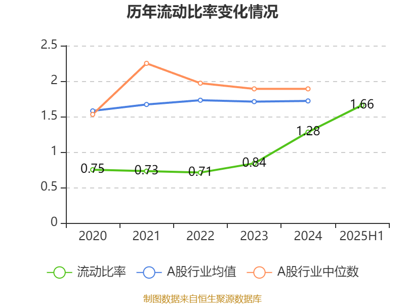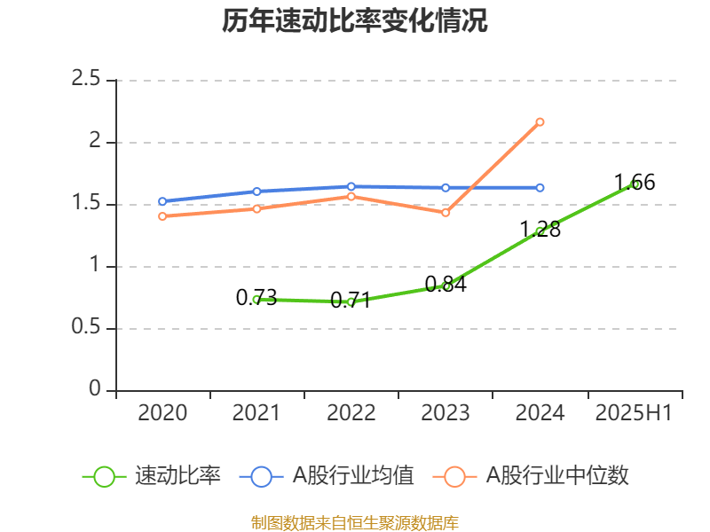2025年上半年,公司流动比率为1.66,速动比率为1.66。