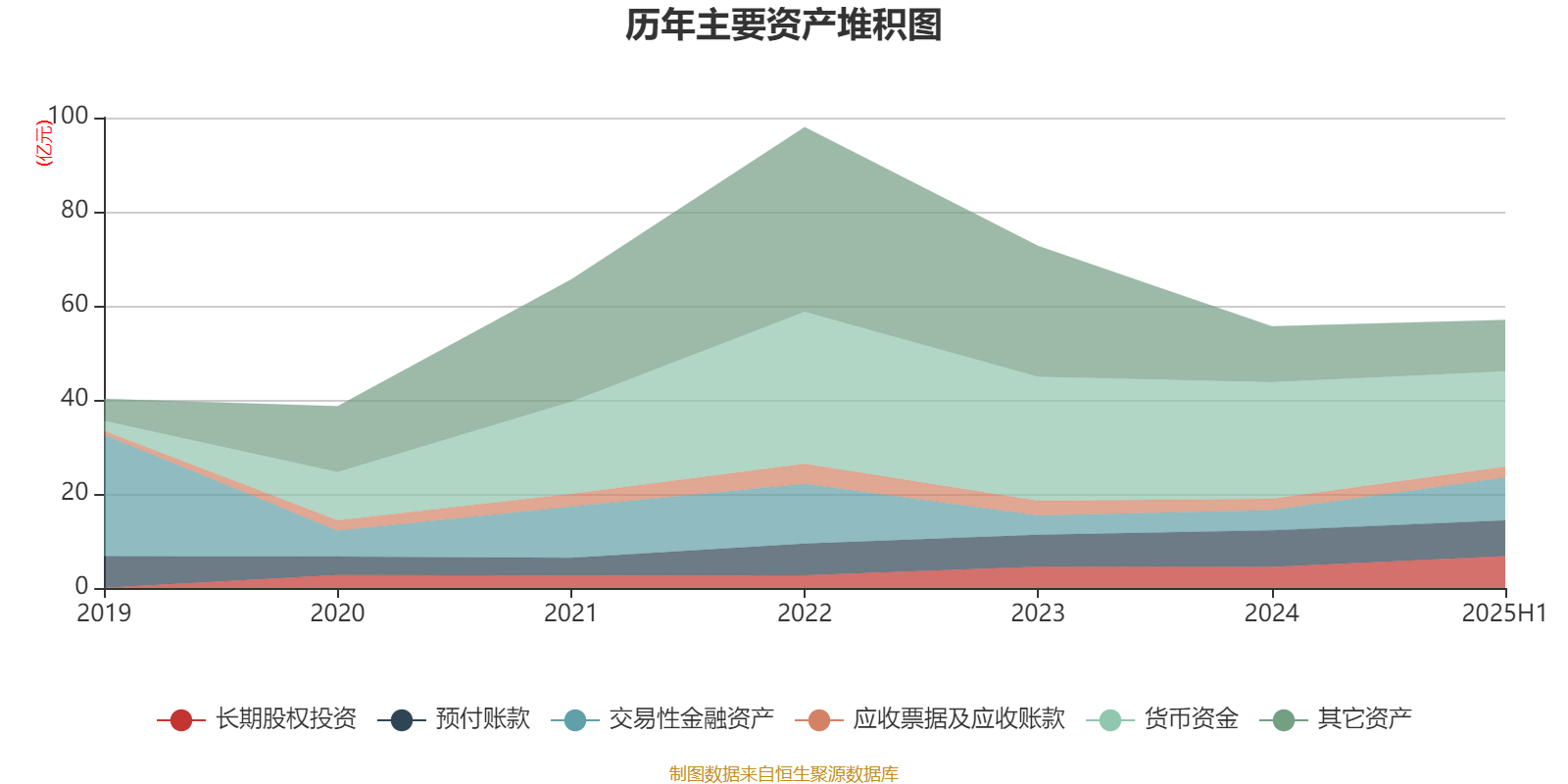 资产重大变化方面,截至2025年上半年,公司货币资金较上期末减少18.12%,占公司总资产比重下降8.95个百分点;交易性金融资产较上期末增加112.34%,占公司总资产比重上升8.3个百分点;长期股权投资较上期末增加51.13%,占公司总资产比重上升3.84个百分点;定期存款较上期末增加216.31%,占公司总资产比重上升2.89个百分点。