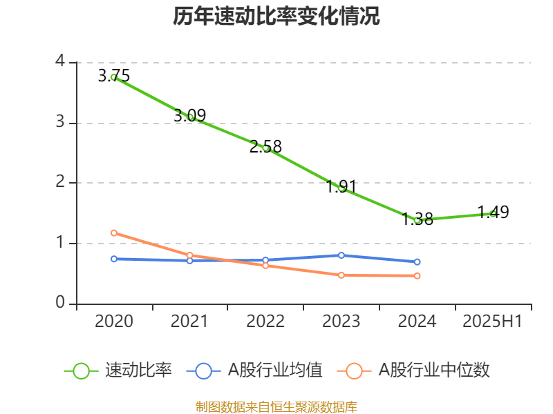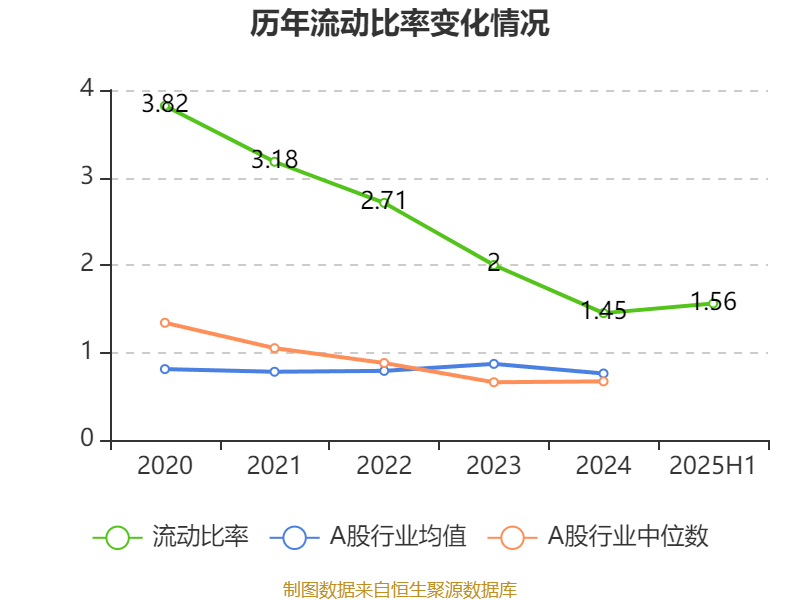 2025年上半年,公司流动比率为1.56,速动比率为1.49。