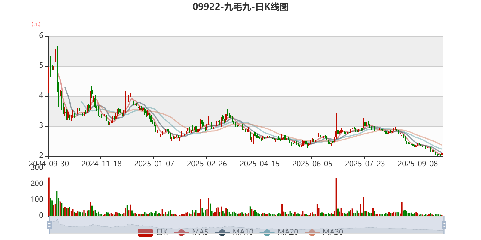 中证智能财讯九毛九(09922)9月29日披露2025年中期报告。报告期内,公司实现营业收入27.53亿元,同比下降10.14%;归母净利润6069.1万元,同比下降16.05%;据报告显示,九毛九基本每股收益为0.04元,平均净资产收益率为1.93%。