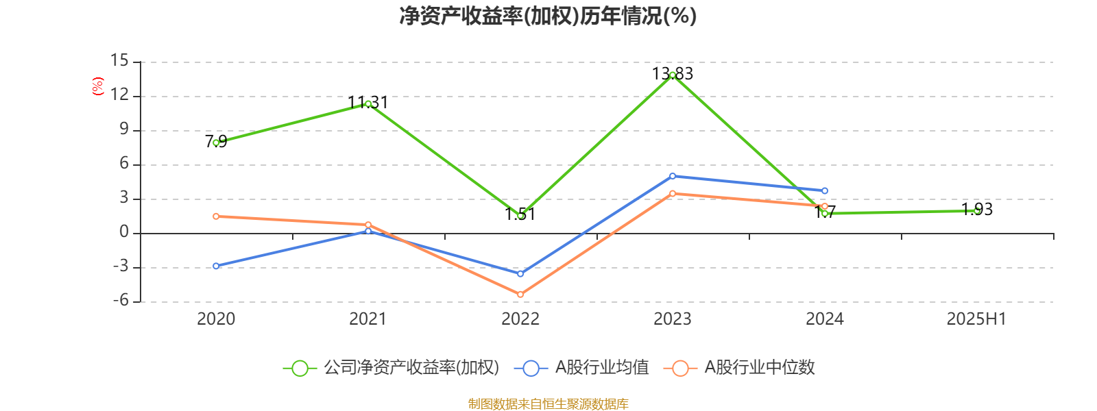 2025年上半年,公司平均净资产收益率为1.93%,较上年同期下降0.29个百分点。