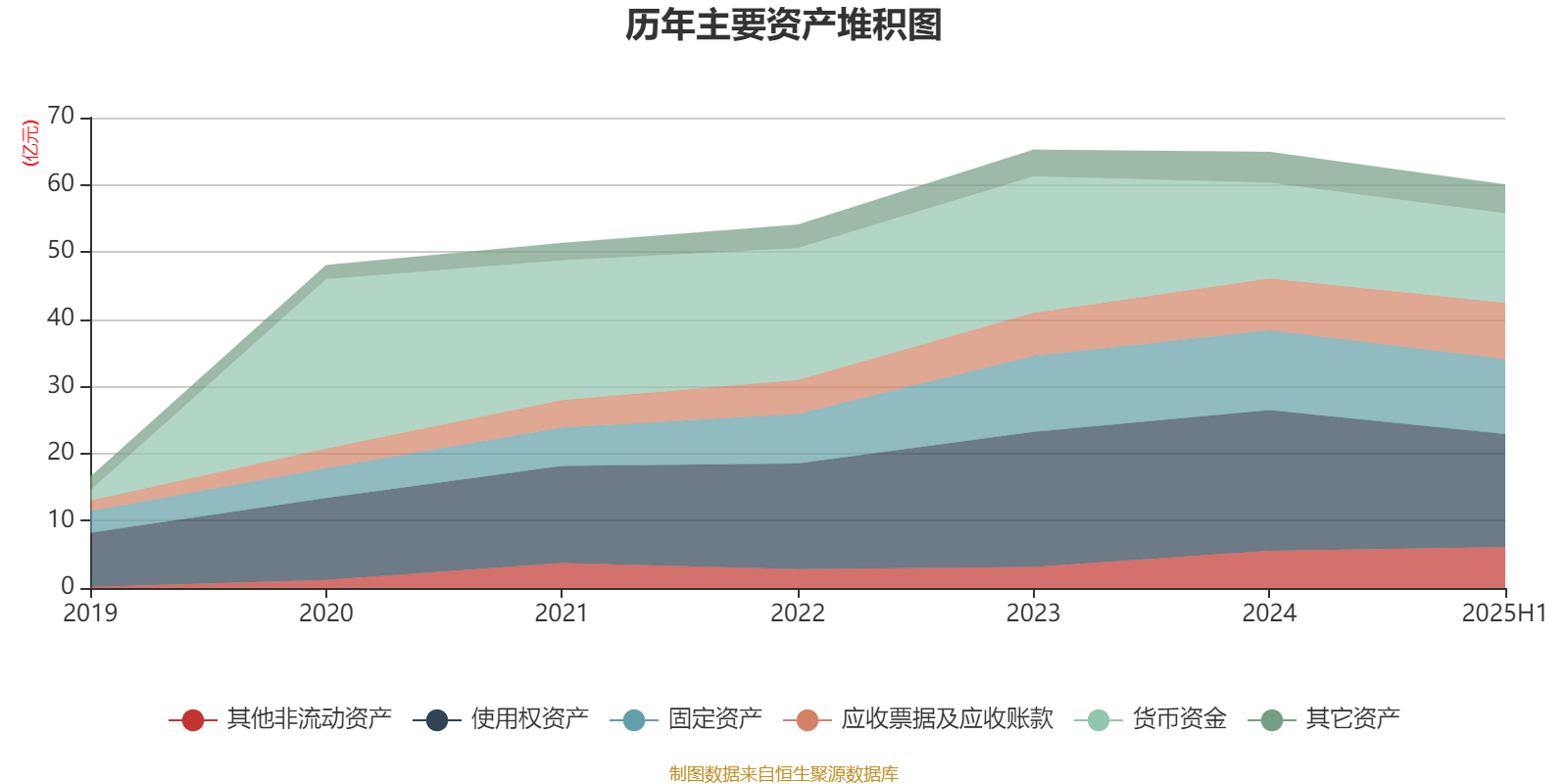 资产重大变化方面,截至2025年上半年,公司使用权资产较上期末减少19.5%,占公司总资产比重下降4.2个百分点;应收票据及应收账款较上期末增加8.82%,占公司总资产比重上升2.08个百分点;其他非流动资产较上期末增加9.43%,占公司总资产比重上升1.56个百分点;货币资金较上期末减少6.46%,占公司总资产比重上升0.23个百分点。