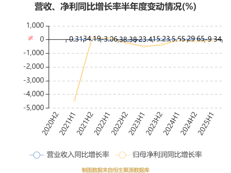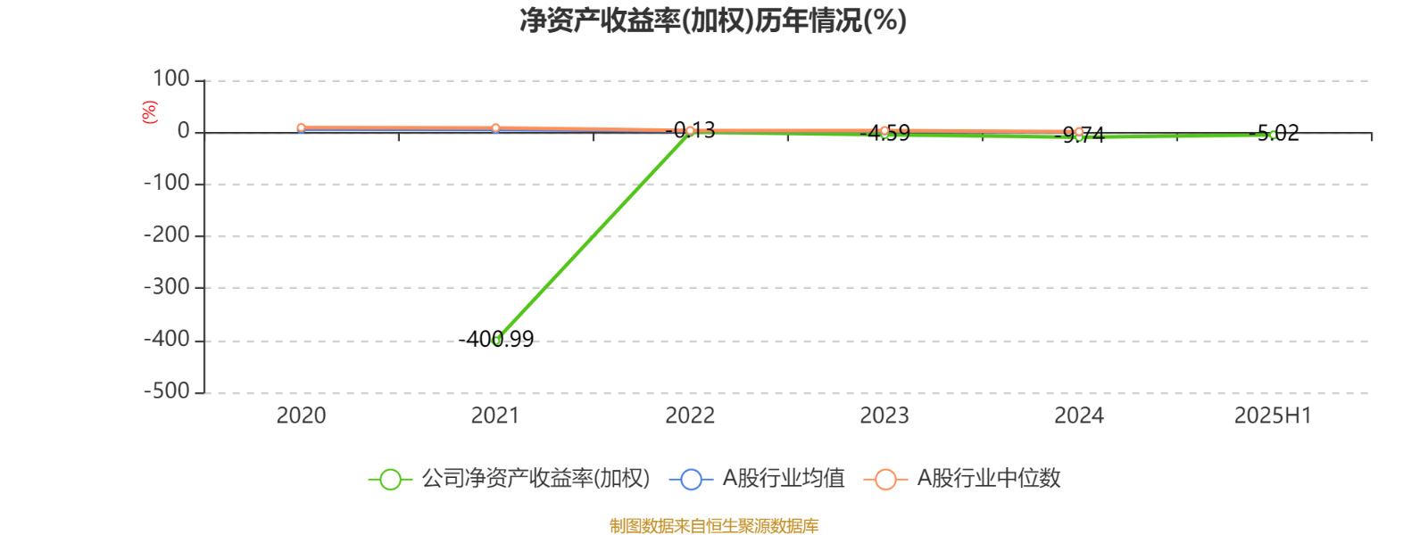 2025年上半年,公司平均净资产收益率为-5.02%,较上年同期下降2.29个百分点。