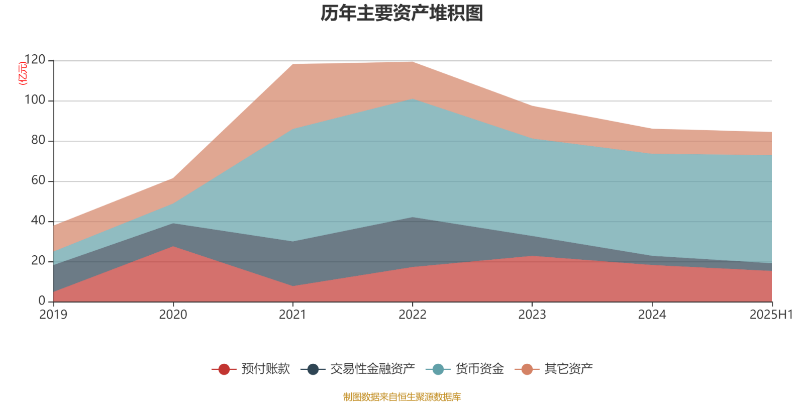 资产重大变化方面,截至2025年上半年,公司货币资金较上期末增加6.03%,占公司总资产比重上升4.76个百分点;预付账款较上期末减少16.31%,占公司总资产比重下降3.1个百分点;交易性金融资产较上期末减少16.47%,占公司总资产比重下降0.79个百分点;应收票据及应收账款较上期末减少16.39%,占公司总资产比重下降0.38个百分点。
