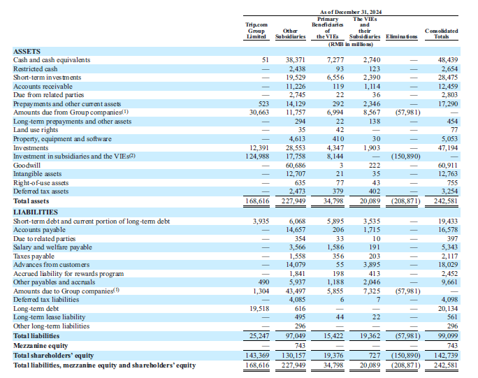 携程2024年年报显示,携程多元资产架构中,流动性资产占比60%,总资产约1686亿元,其中现金及等价物563亿元,长短期投资约757亿元,通过充足的流动资产储备,为业务拓展、投资并购及应对行业波动提供资金保障。
