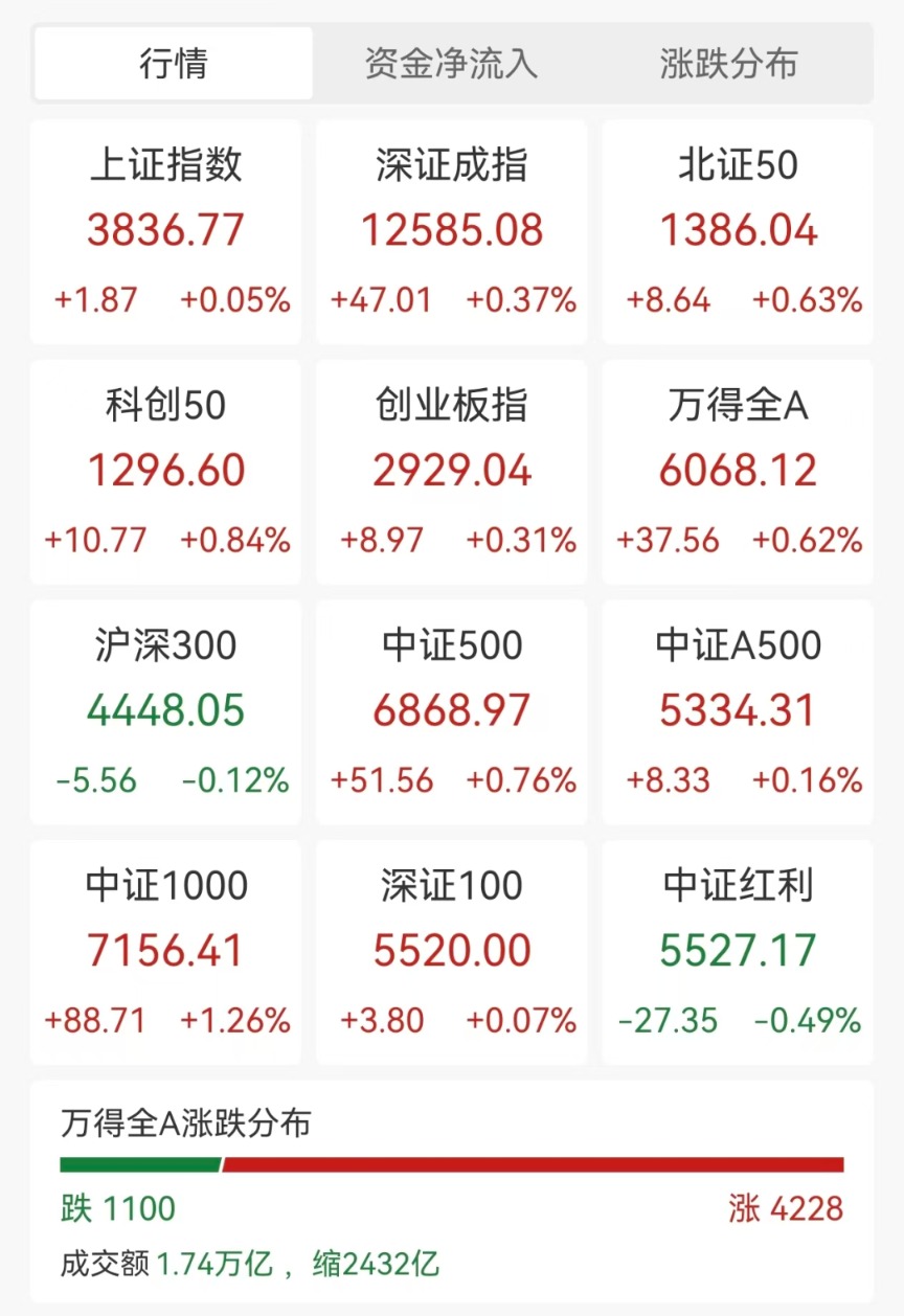 11月24日,A股探底回升,三大指数集体收红,全市场超4200只个股上涨。