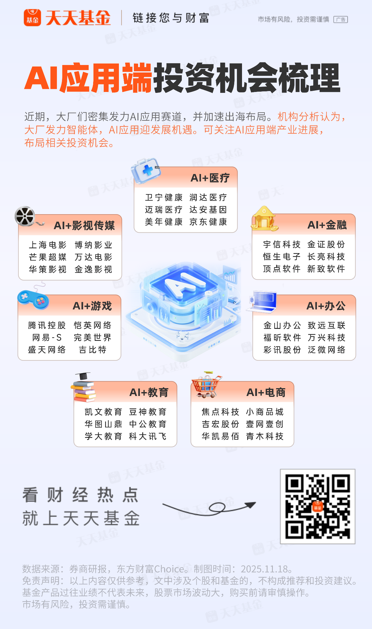 开源证券指出,国内头部互联网公司在大模型、C端Agent方面的崛起,有望助力AI应用商业化加速,建议继续布局商业化落地较快的AI应用方向:AI漫剧、AI广告、AI电商、AI设计。
