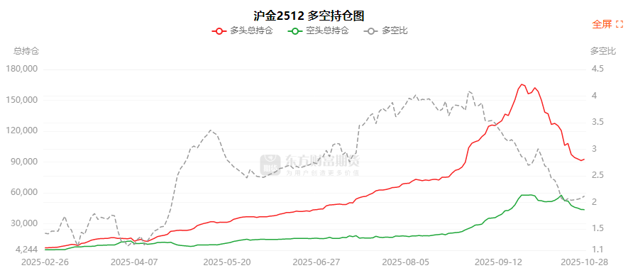 沪金龙虎榜 | 主力合约减仓下行 空方呈退场态势
