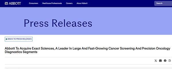 据悉,这笔交易创下自2017年以250亿美元收购医疗设备制造商St.Jude Medical以来,雅培最大规模的收购纪录。雅培原有诊断业务聚焦糖尿病、心血管疾病,此次收购将获得癌症筛查领域完整技术矩阵,使雅培能够进入并引领快速增长的癌症诊断领域,在改变癌症治疗、推进早期检测、优化治疗和监测方面处于独特地位。