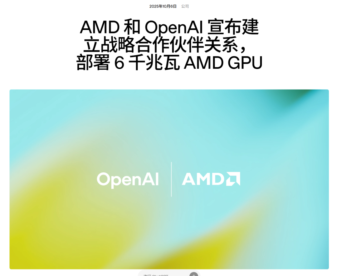 两家公司周一在声明中称,已签订最终协议,OpenAI将在数年内部署总计6吉瓦规模的AMD图形处理器(GPU)算力。这一规模大致相当于OpenAI近期与英伟达(Nvidia)达成协议的一半多一点。